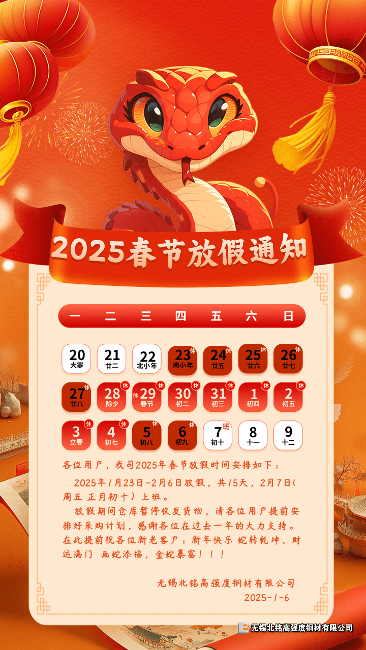 2025年春節放假通知